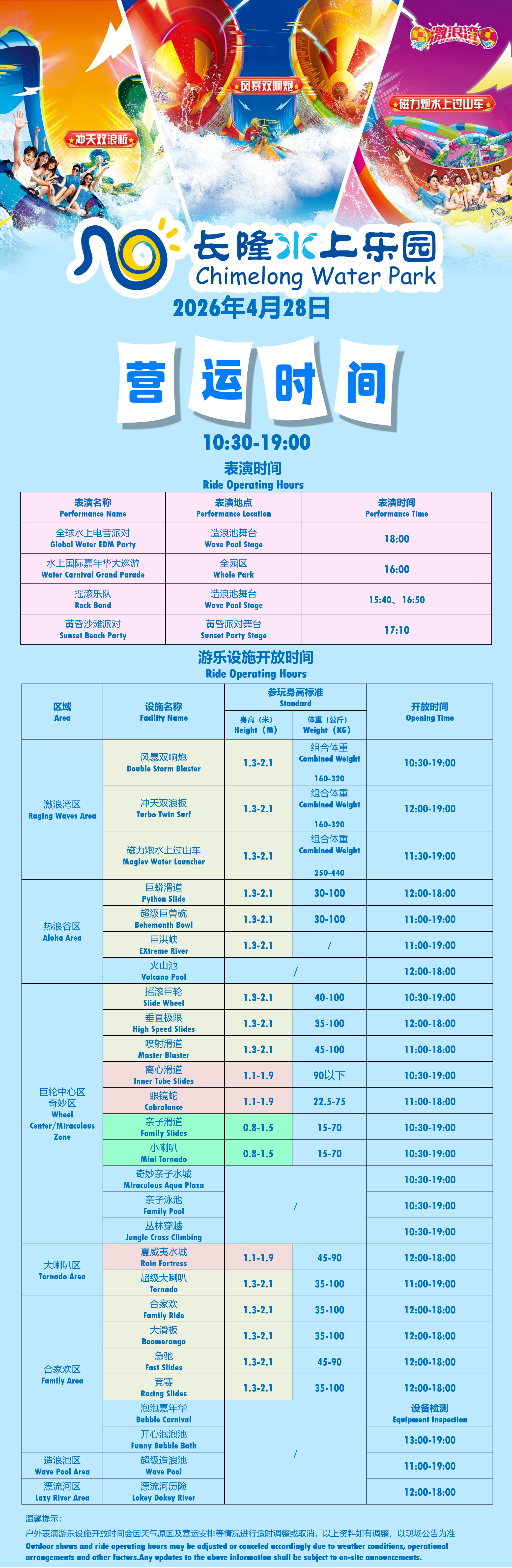 广州长隆水上乐园游乐设施开放时间