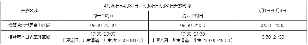 【横琴湾水世界营运时间】
